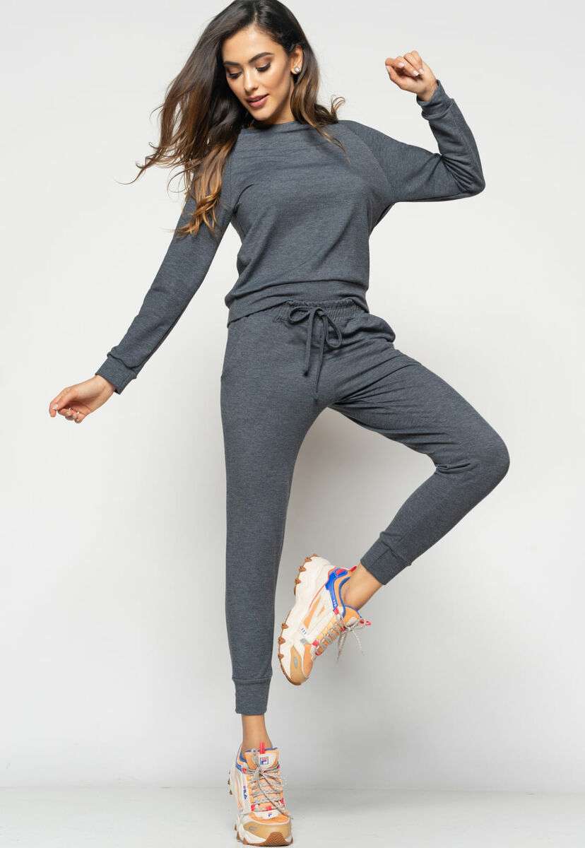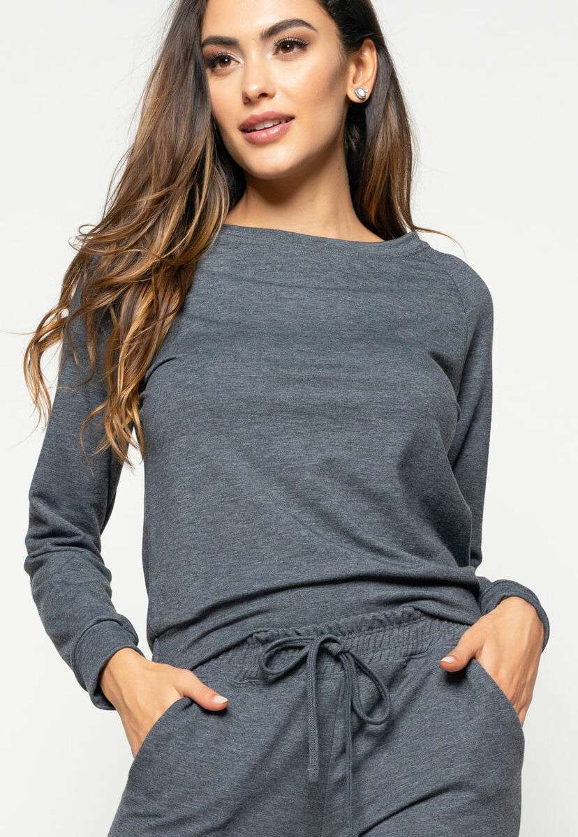 Casaco Comfy Com Gola Canoa Moletinho Grafite