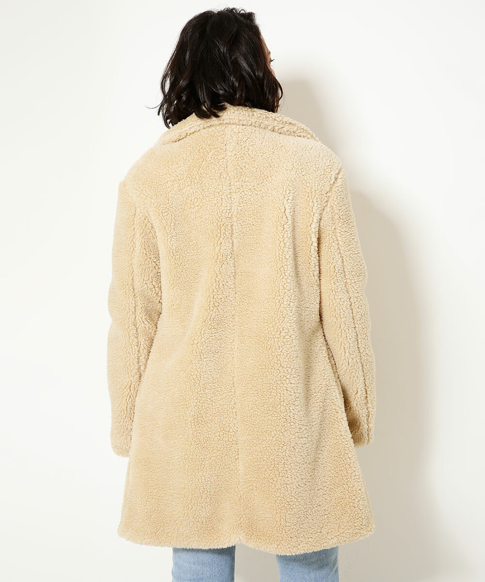 Casaco feminino, modelo alongado, confeccionado em tecido poliéster. Possui gola dobrável, pelúcia, forro, fechamento por botão, manga longa, acabamento e costura no tom.
