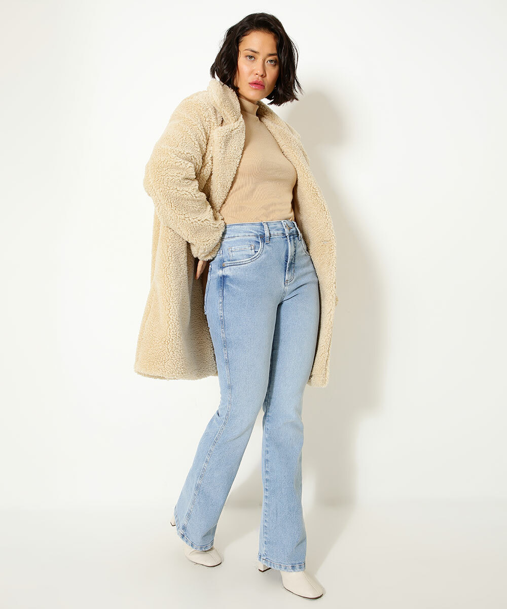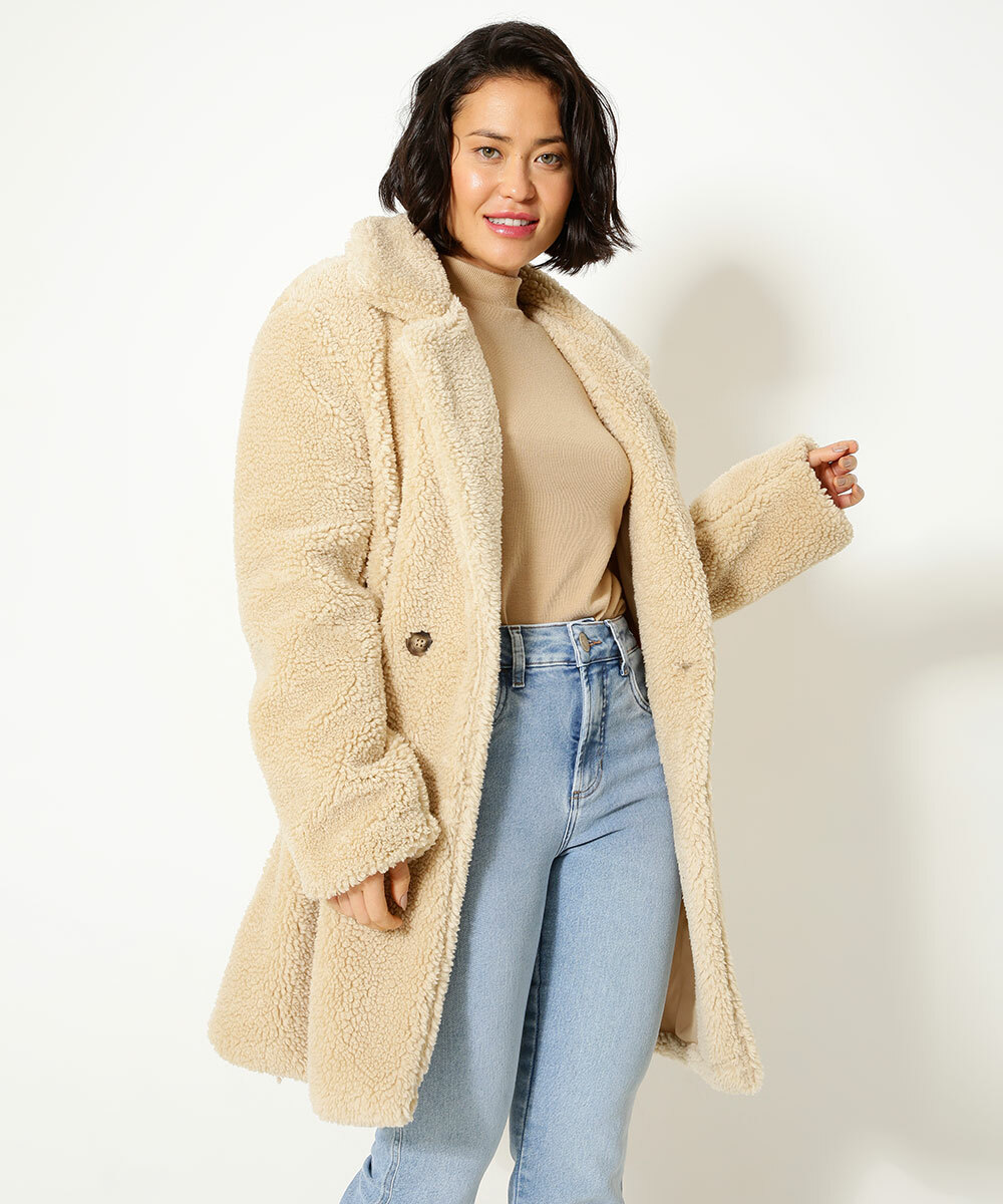 Modelo: Casaco Feminino Alongado Pelúcia Botão Marisa