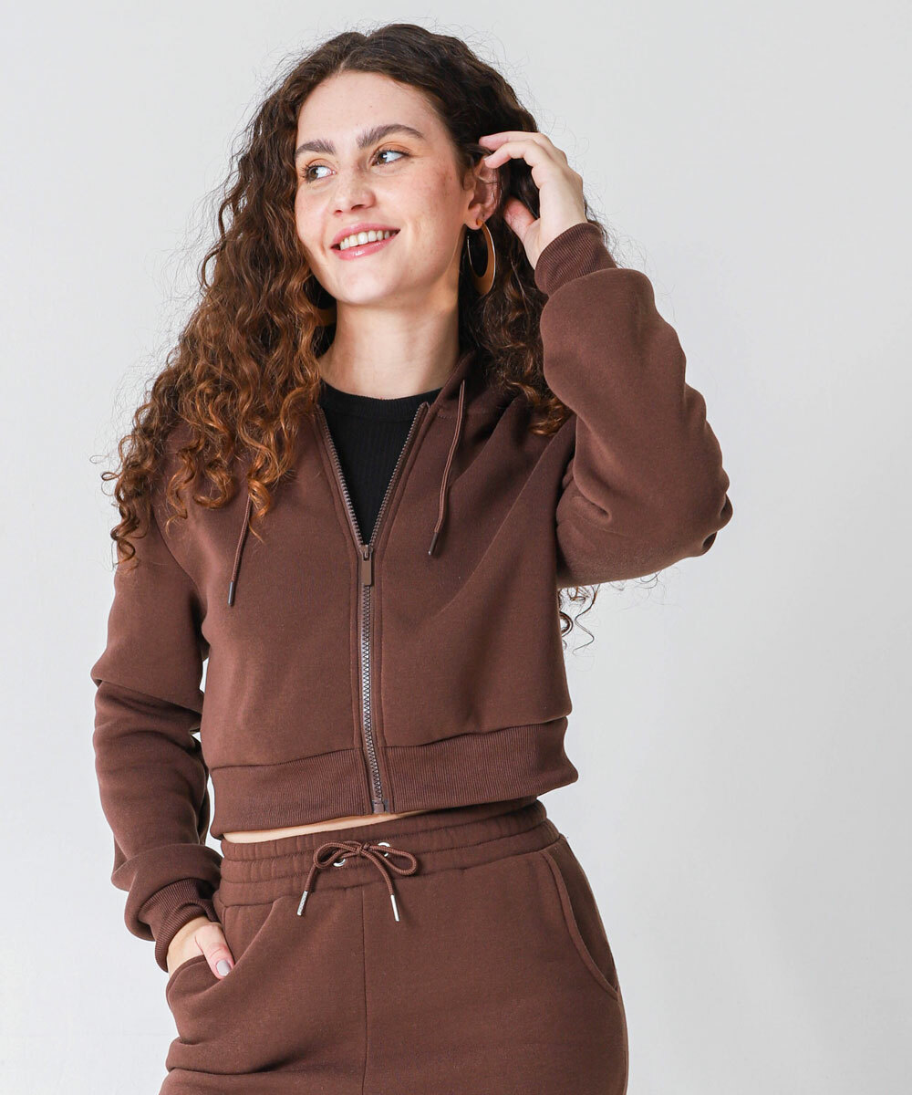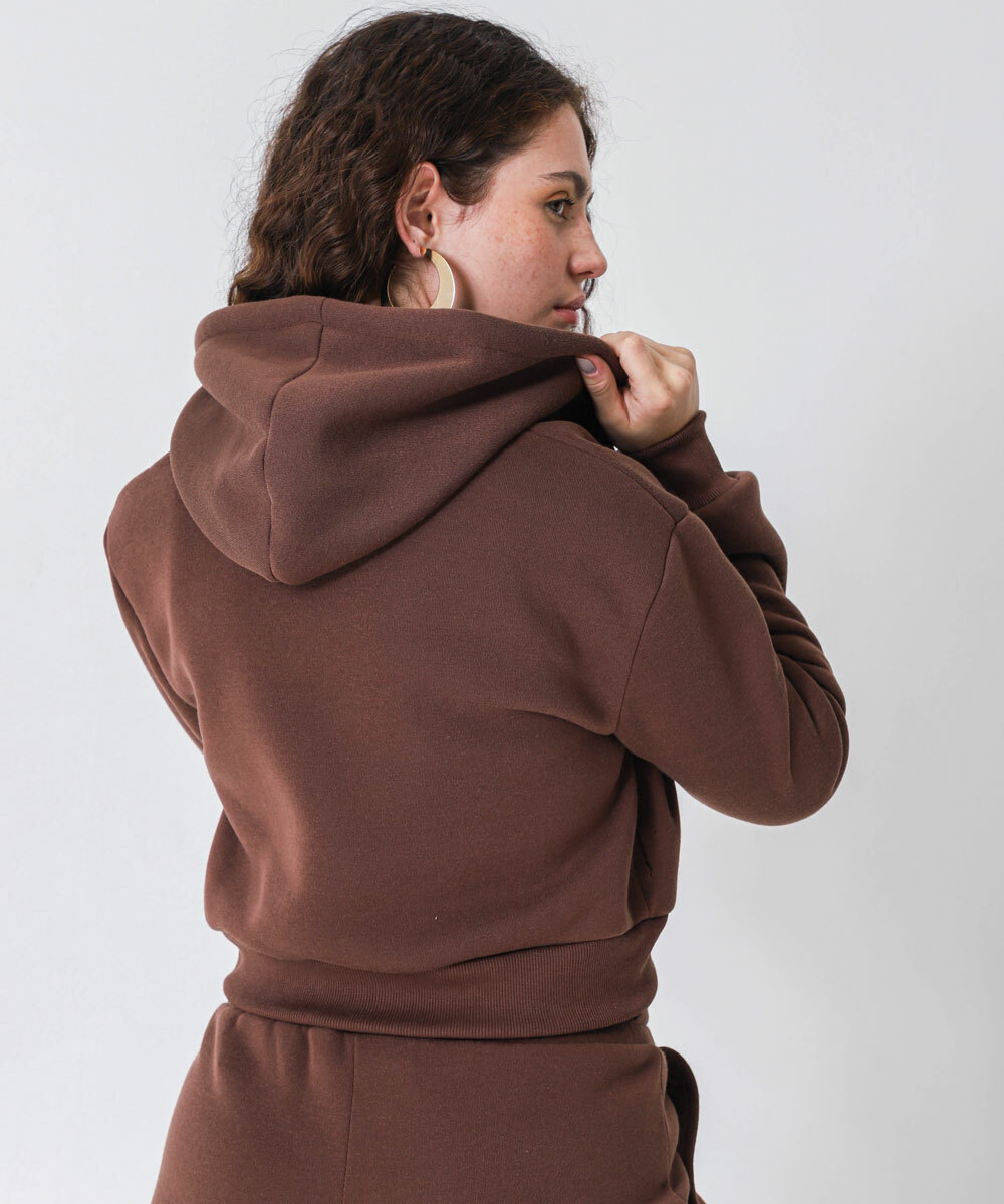 Casaco Feminino Cropped Moletom Flanelado Marisa Marrom