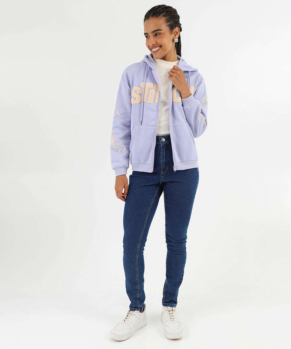 Casaco Feminino Moletom Capuz Stitch Azul
