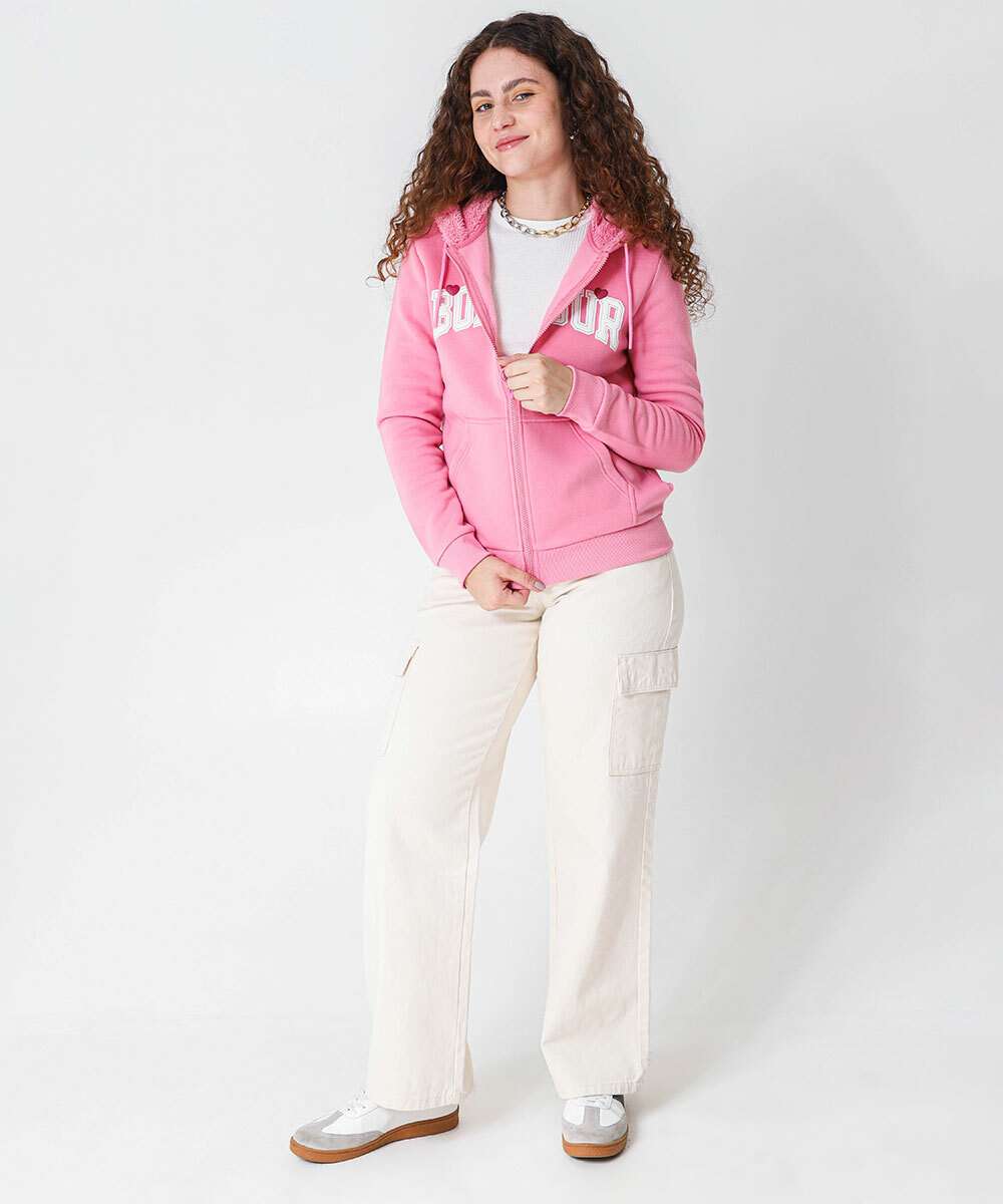 Casaco Feminino Moletom Flanelado Frase Marisa Rosa