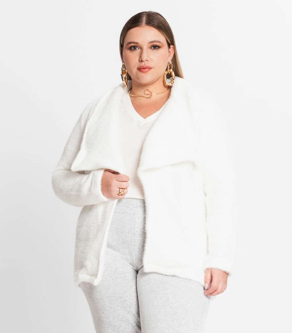 Casaco Feminino Plus Size Em Tweed Secret Glam Bege