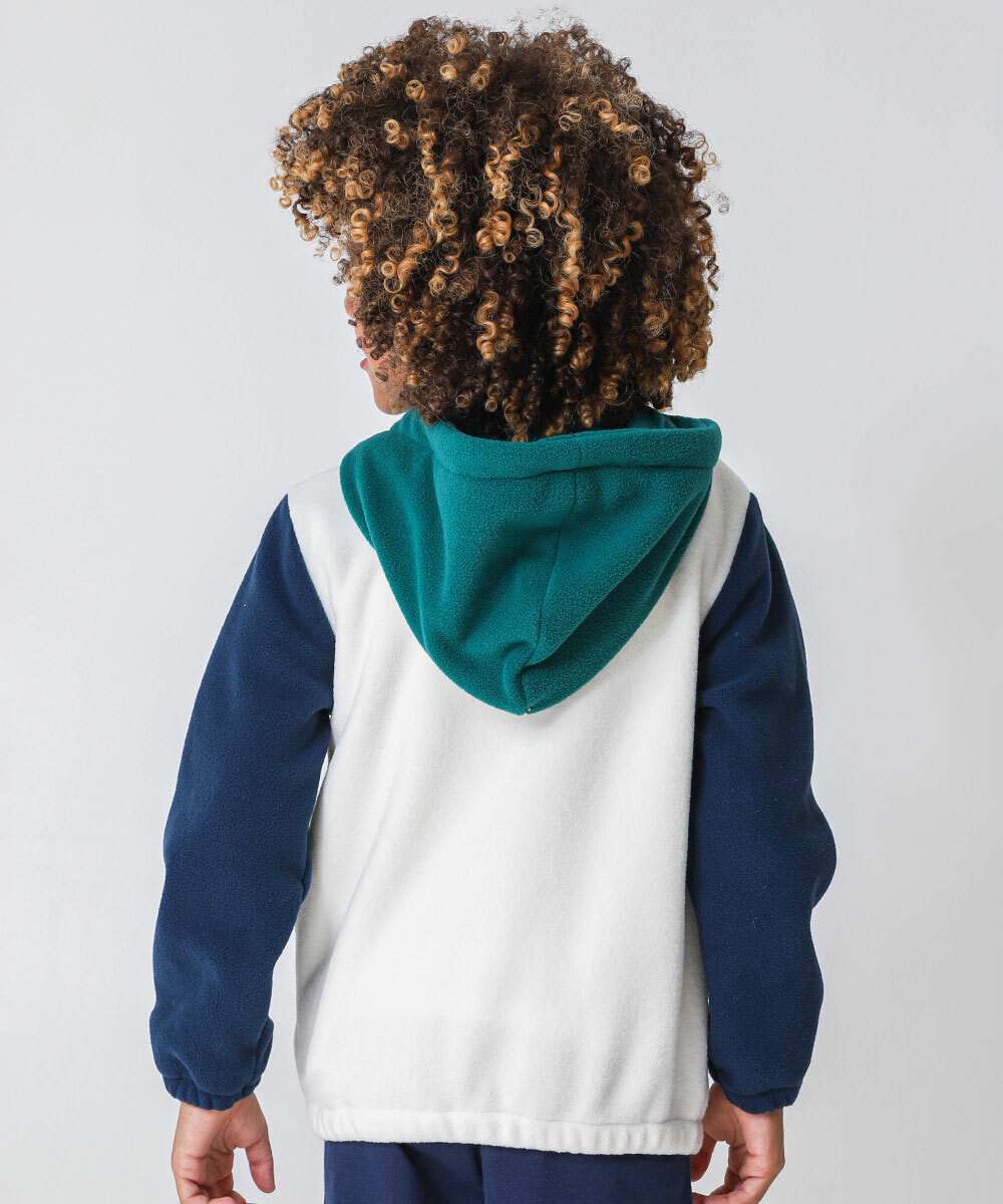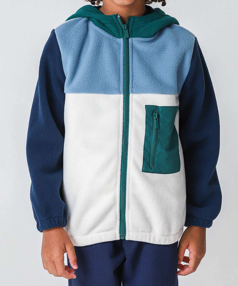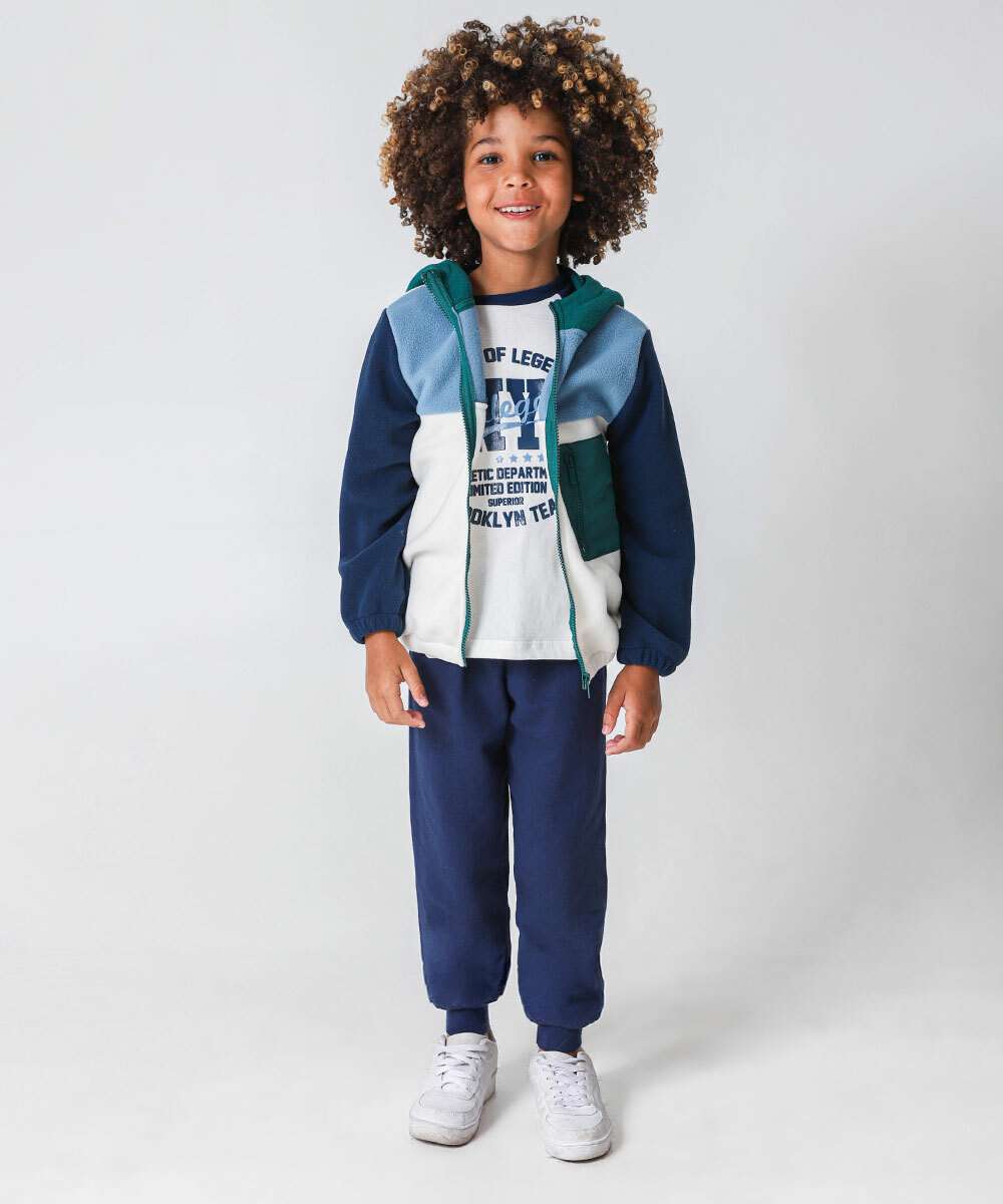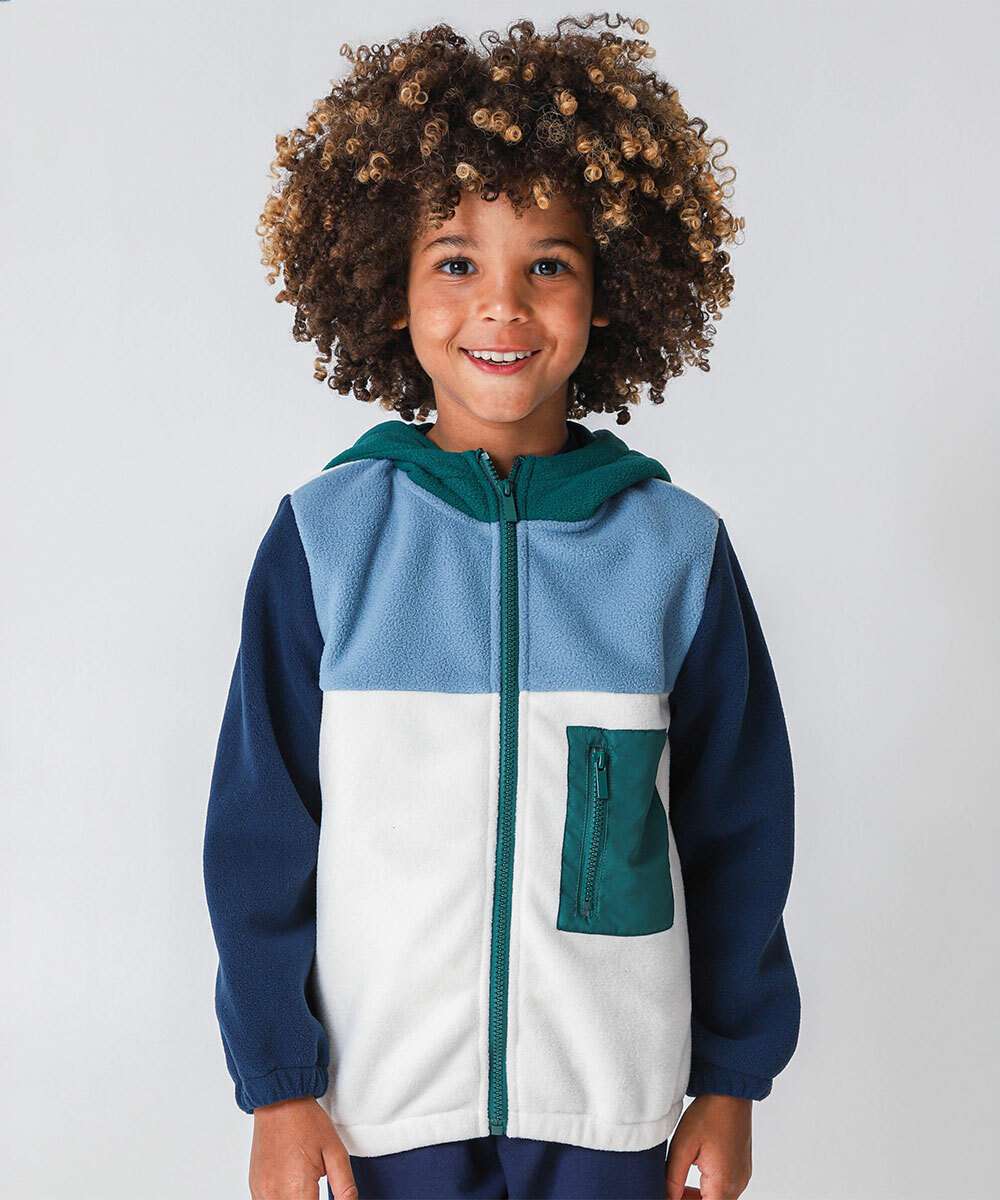 Casaco Infantil Moletom Recorte Capuz Marisa Tam 4 a 10 Azul