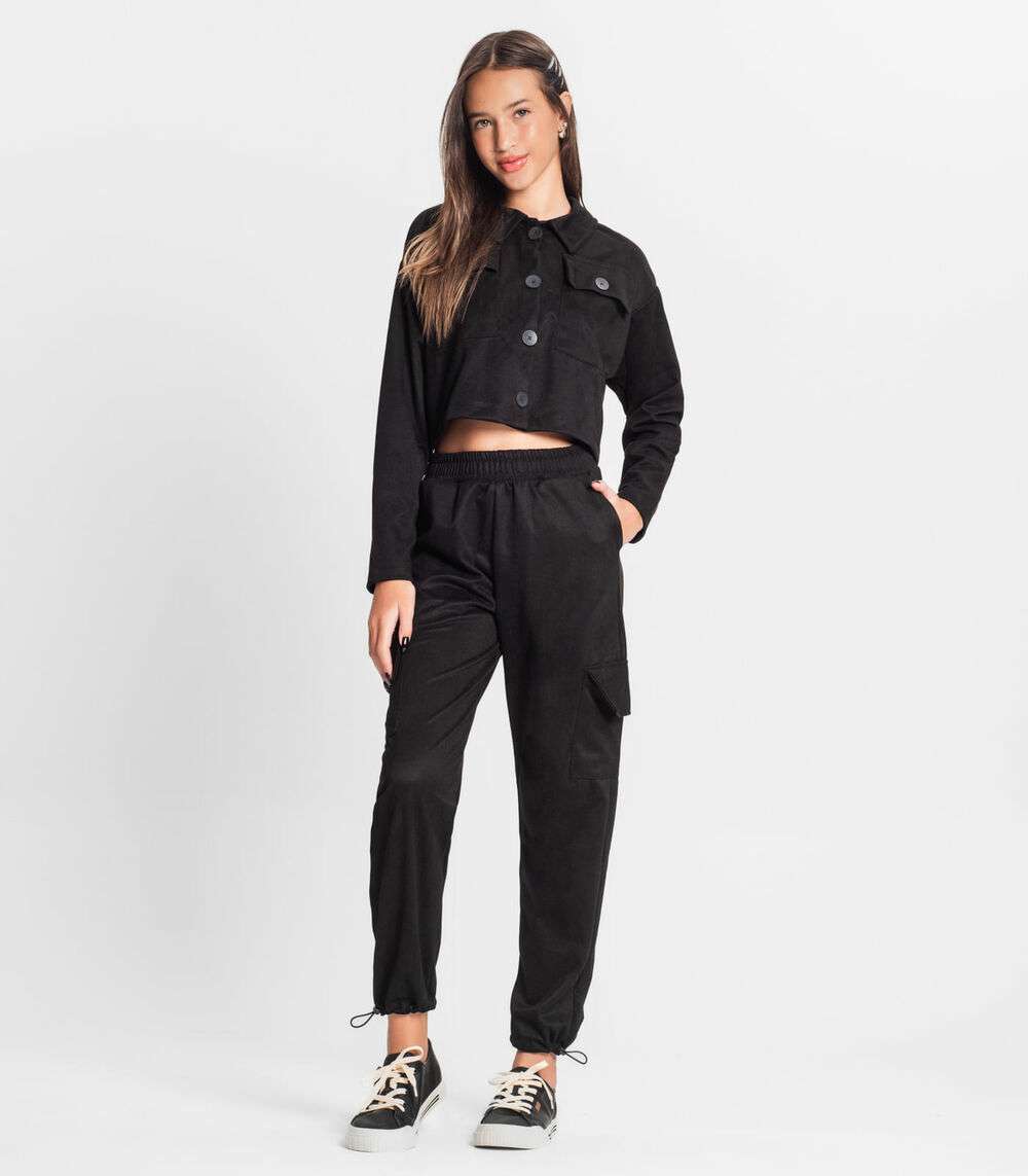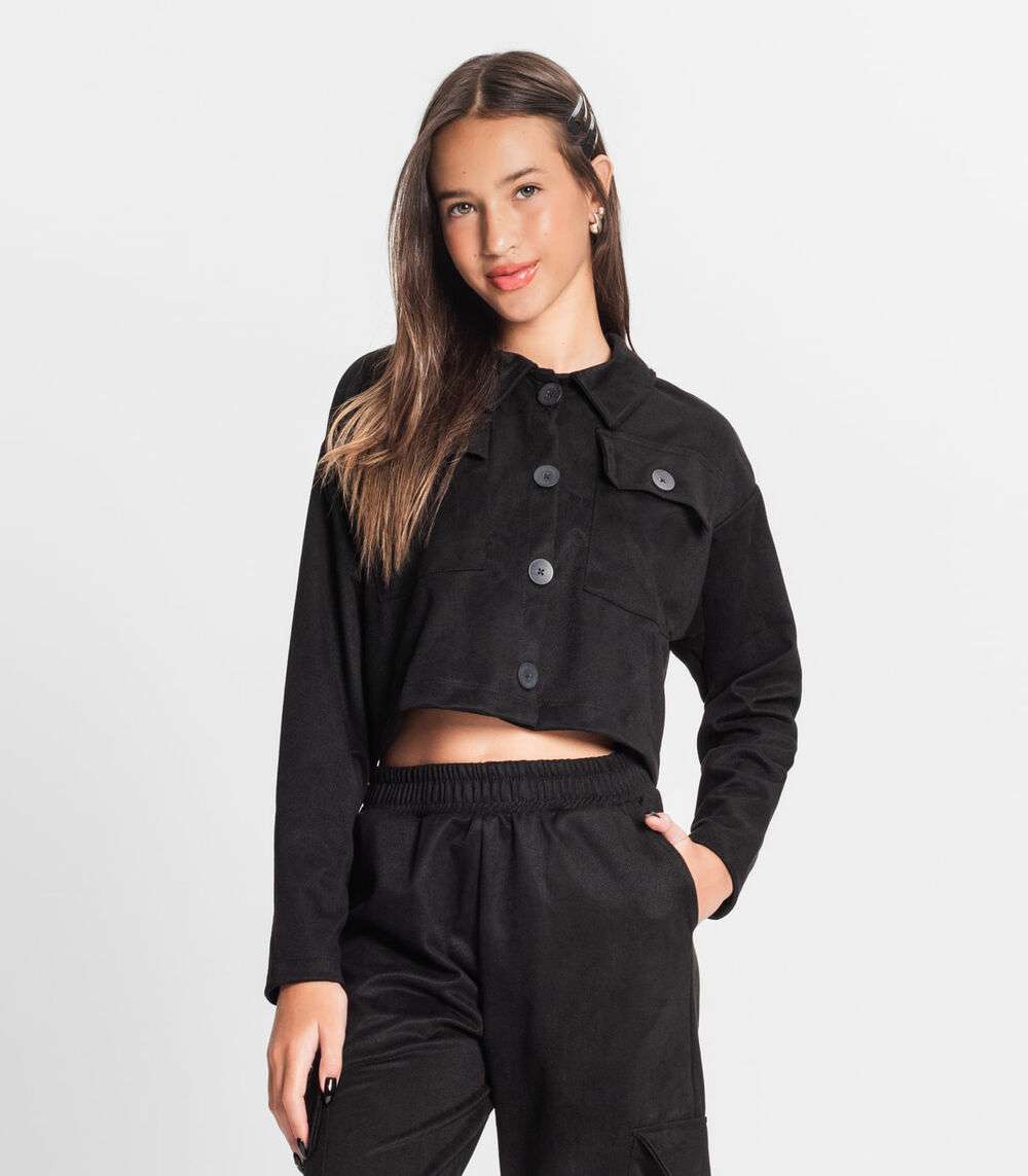 Casaco Juvenil Feminino Em Suede Sarjado Minty Preto