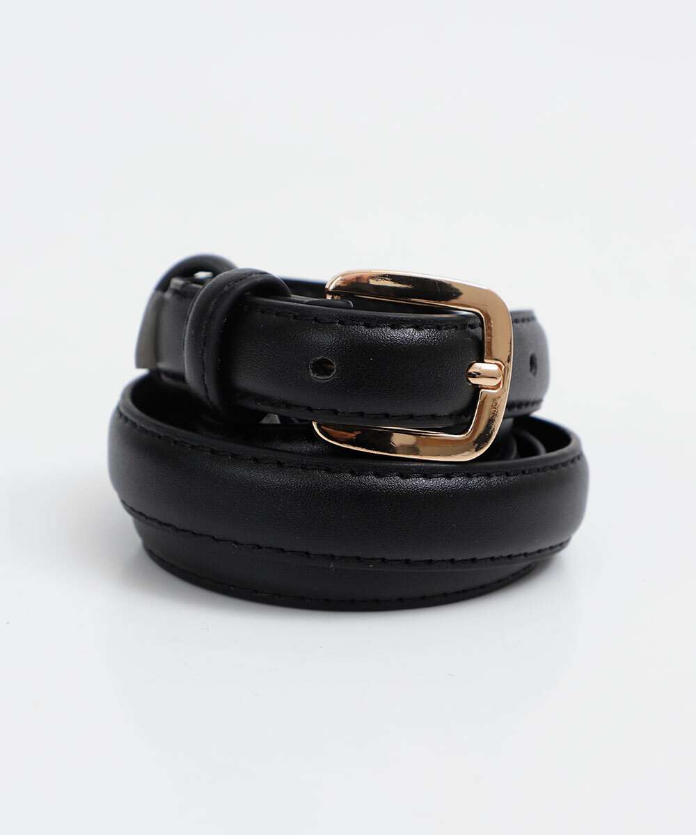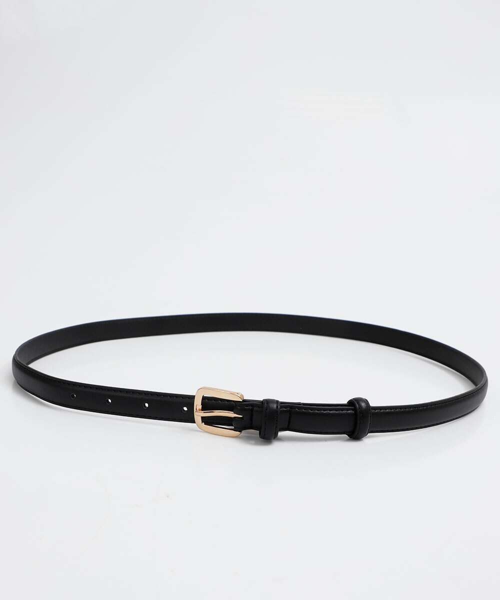 Cinto feminino, modelo fino confeccionado em material sintético. Possui fechamento por fivela de metal, níveis de ajuste, passante, acabamento e costura no tom.