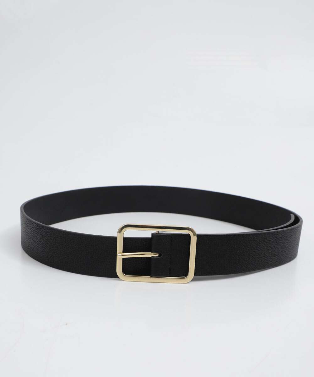 Cinto feminino, modelo fino confeccionado em material sintético com textura. Possui fechamento por fivela de metal, níveis de ajuste, acabamento e costura no tom.