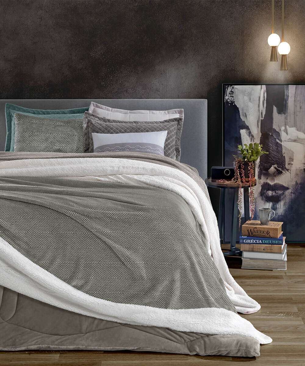 Cobertor Casal Slim Sherpa Chevron Hedrons 1 Peça