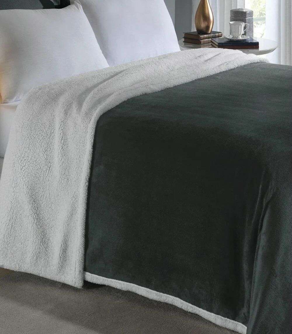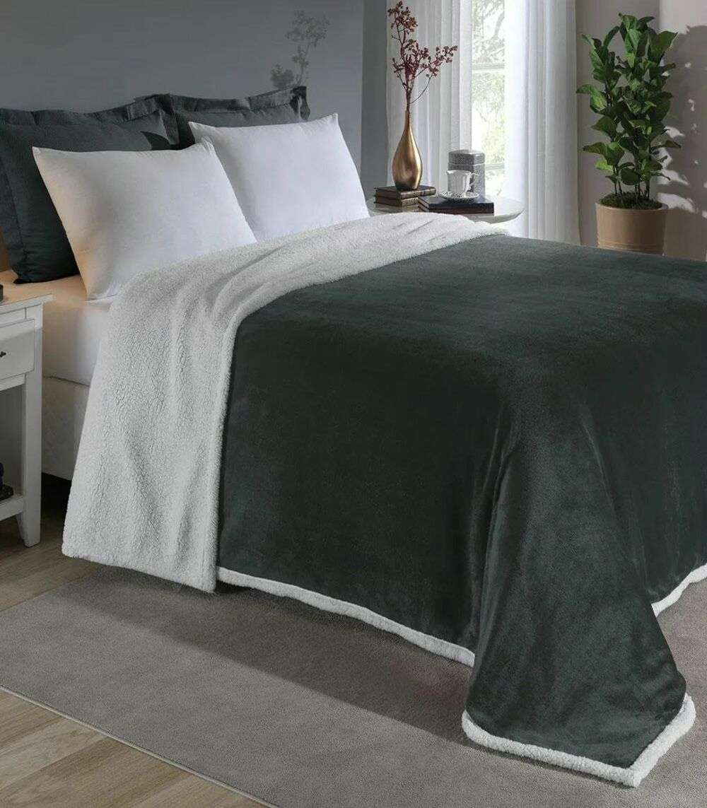 Cobertor Sherpa Dupla Face Queen Lar E Lazer Cinza