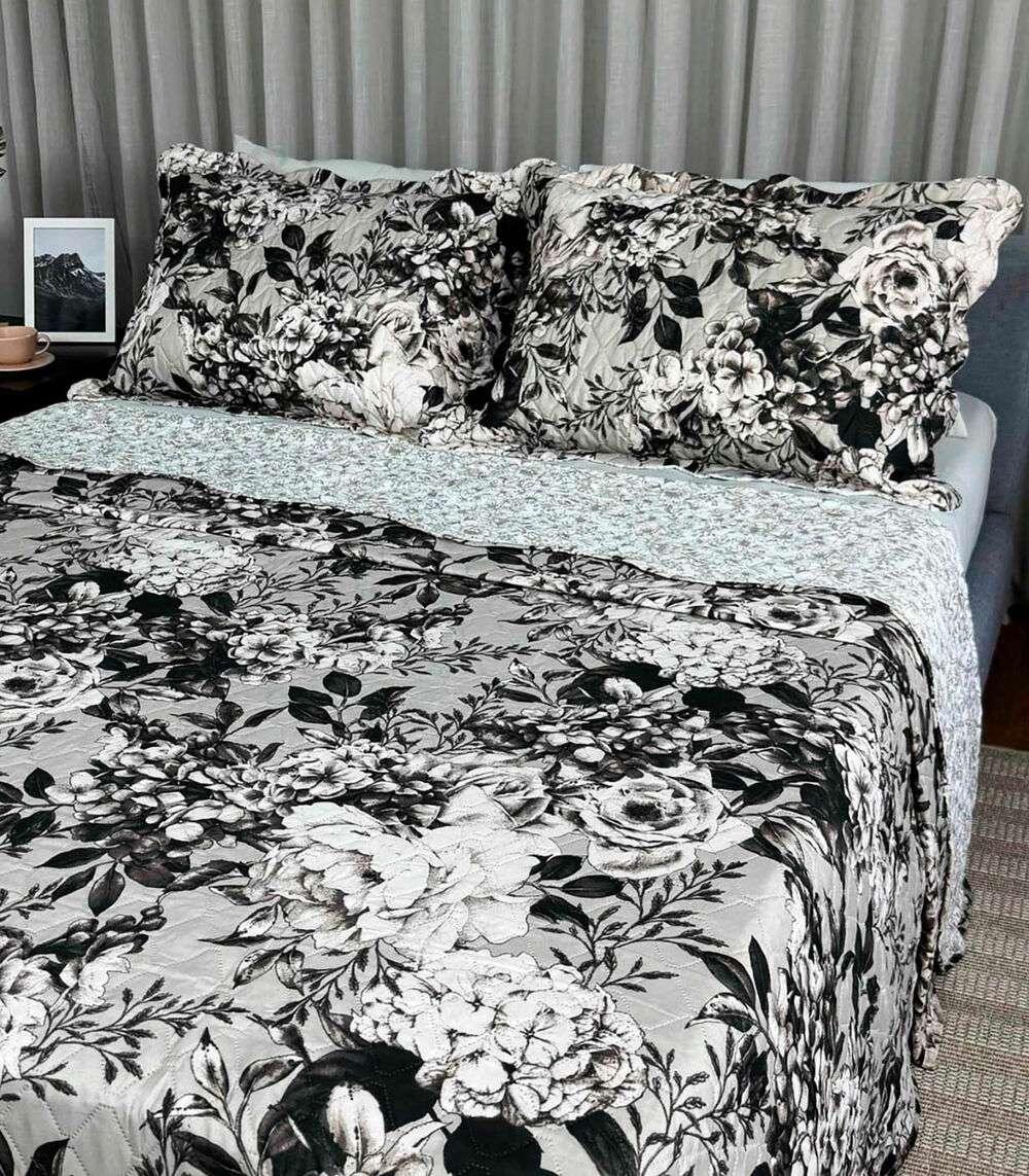 Cobreleito Solteiro Estampado Dupla Face Lepper Preto