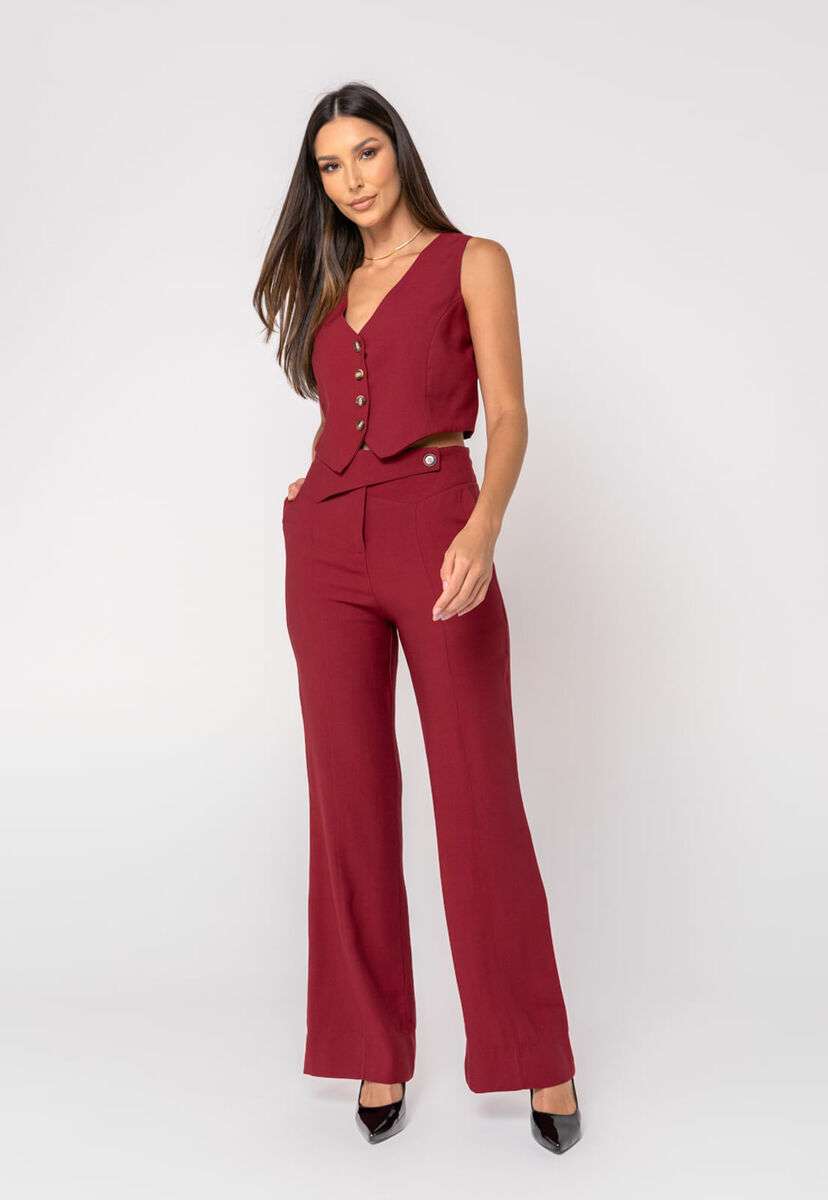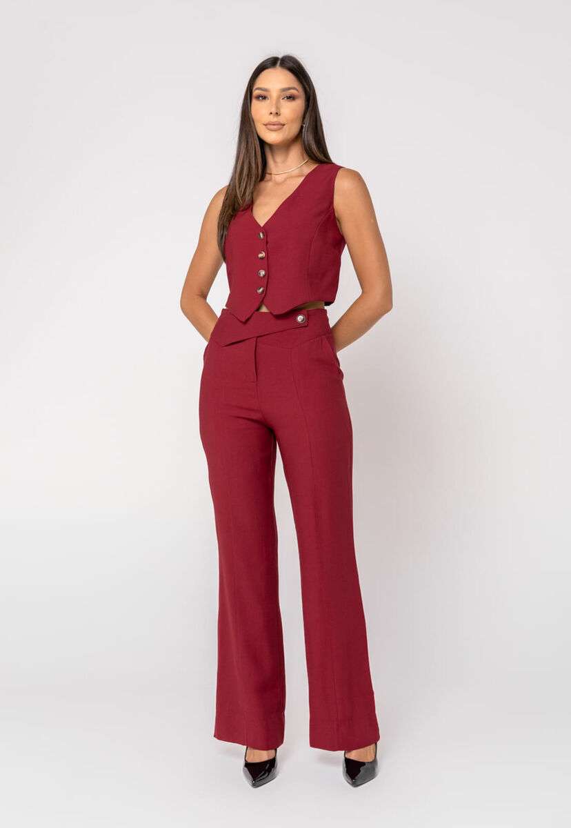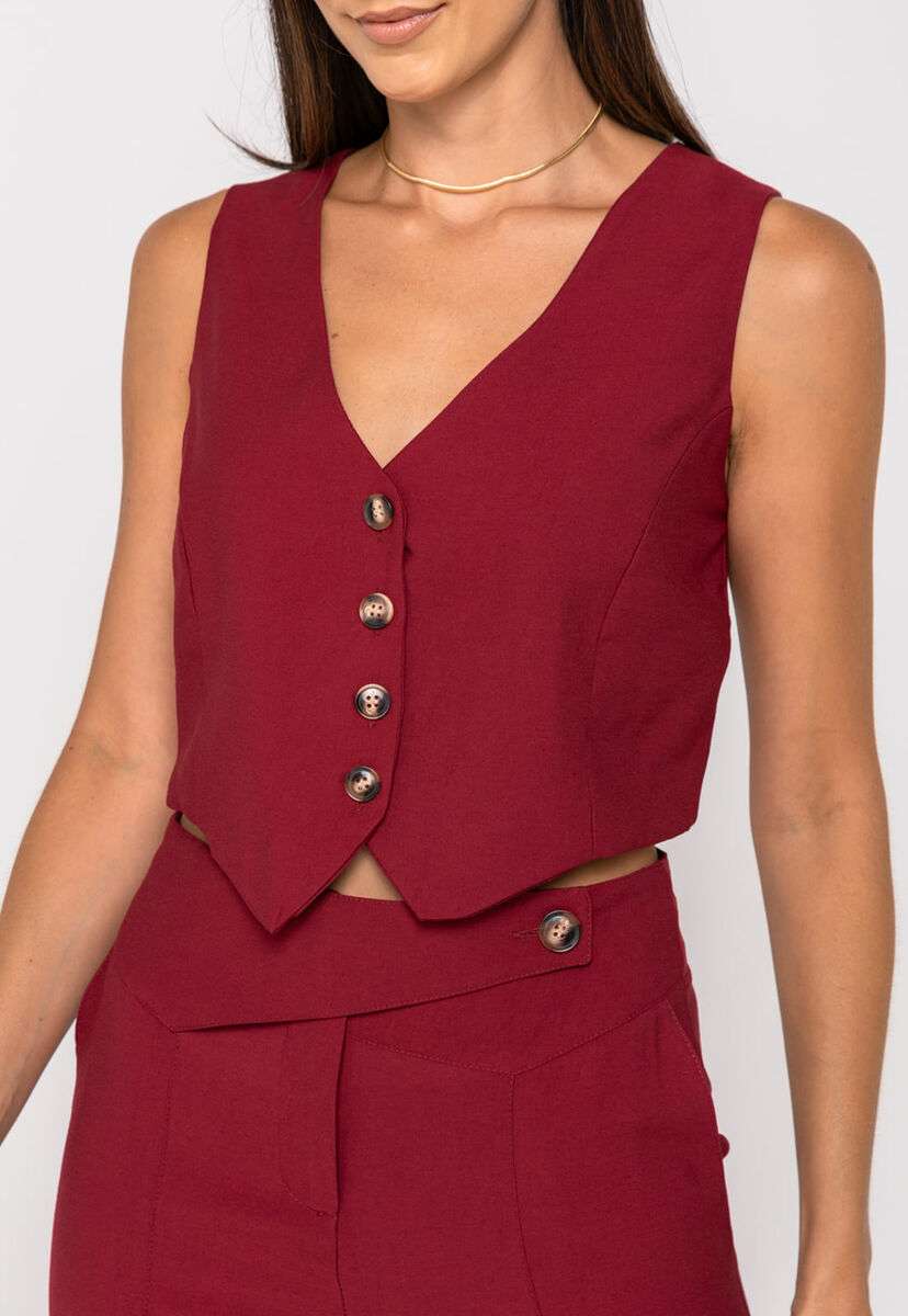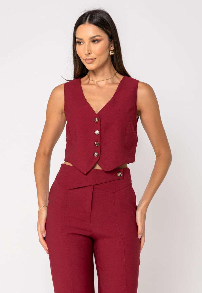 Colete Alfaiataria Curto com Botões Vinho Salvatore