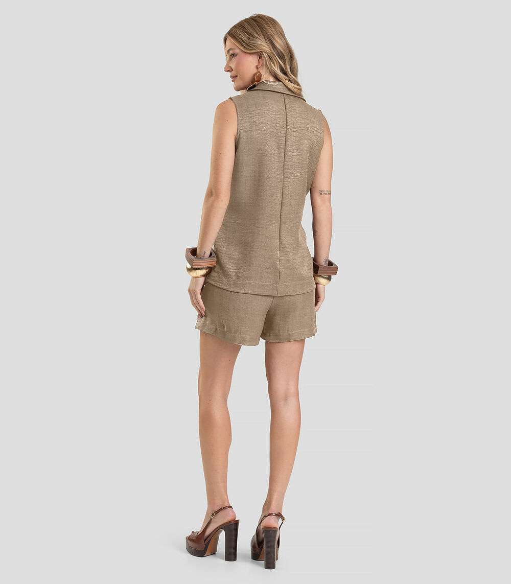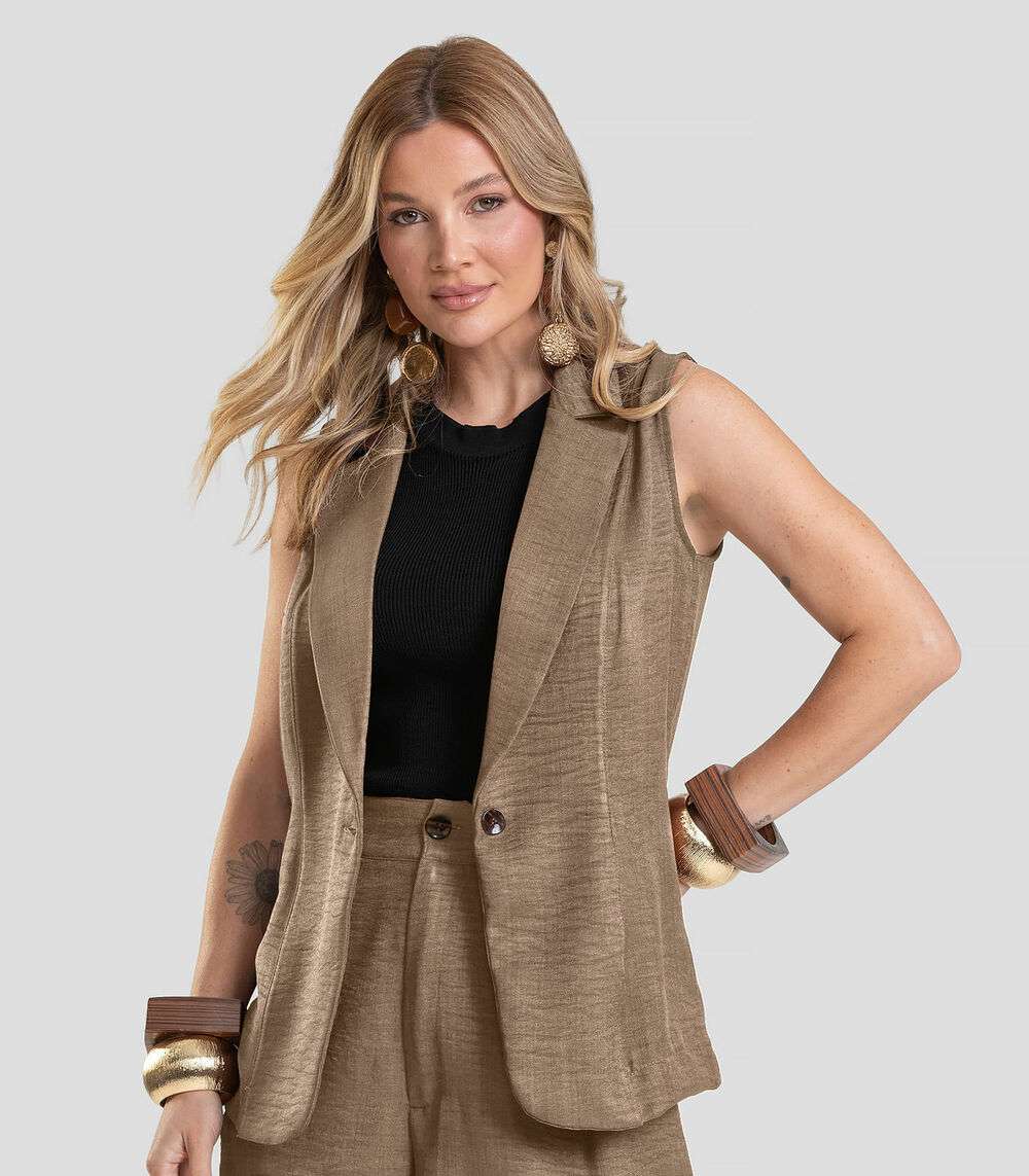 Colete Feminino em Tecido Poli Linho Dianna Marrom