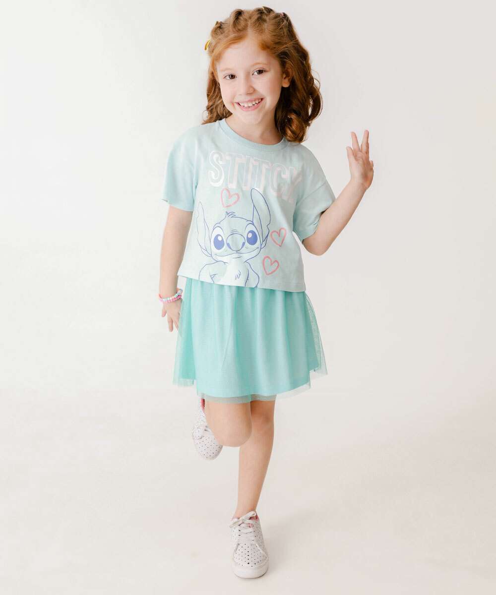 Conjunto Infantil Tule Stitch Disney Tam 4 a 10