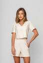 O conjunto feminino é a combinação perfeita entre sofisticação e praticidade. Composto por blusa e shorts de alfaiataria, ele traz um visual moderno, elegante e atemporal, ideal para diversas ocasiões — do trabalho a eventos casuais com estilo.A blusa possui decote em V, zíper na lateral para melhor ajuste, mangas curtas com detalhe em V e leve volume nos ombros, que valorizam a silhueta e adicionam um toque de feminilidade. Já o short de cintura alta, confeccionado em tecido leve e estruturado, oferece conforto e caimento impecável, além do cinto com fivela dourada que realça a cintura e traz um detalhe sofisticado à produção. Os bolsos laterais funcionais completam o visual, garantindo praticidade sem abrir mão da elegância, e zíper na lateral para melhor ajuste. Short: • Cinto com fivela dourada • Bolsos laterais funcionais • Tecido leve, confortável e com ótimo caimento • Zíper lateral Camisa: • Blusa com decote em V • Mangas curtas com leve volume • Modelagem solta • Zíper lateral Modelo veste tamanho P. Medidas da modelo: Altura 1,70 – Busto 89 – Cintura 65 – Quadril 92 – Manequim 36.Composição: 92% Viscose, 8% Poliéster.