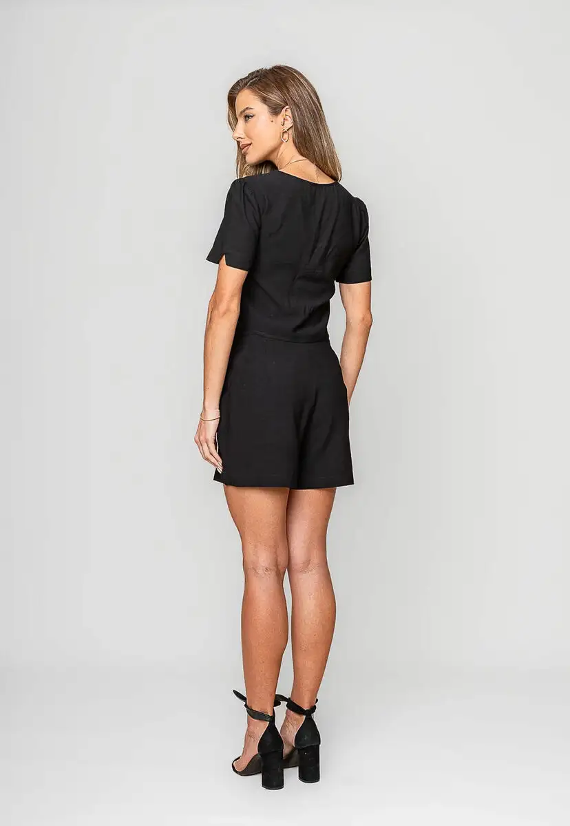 Conjunto Alfaiataria Com Blusa Ampla e Short Fivela Preto Salvatore