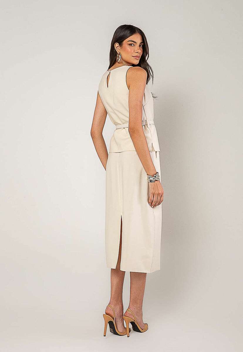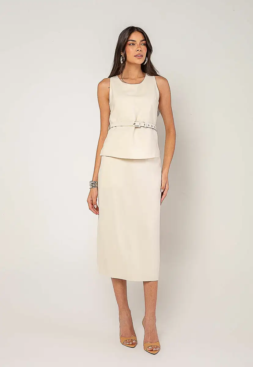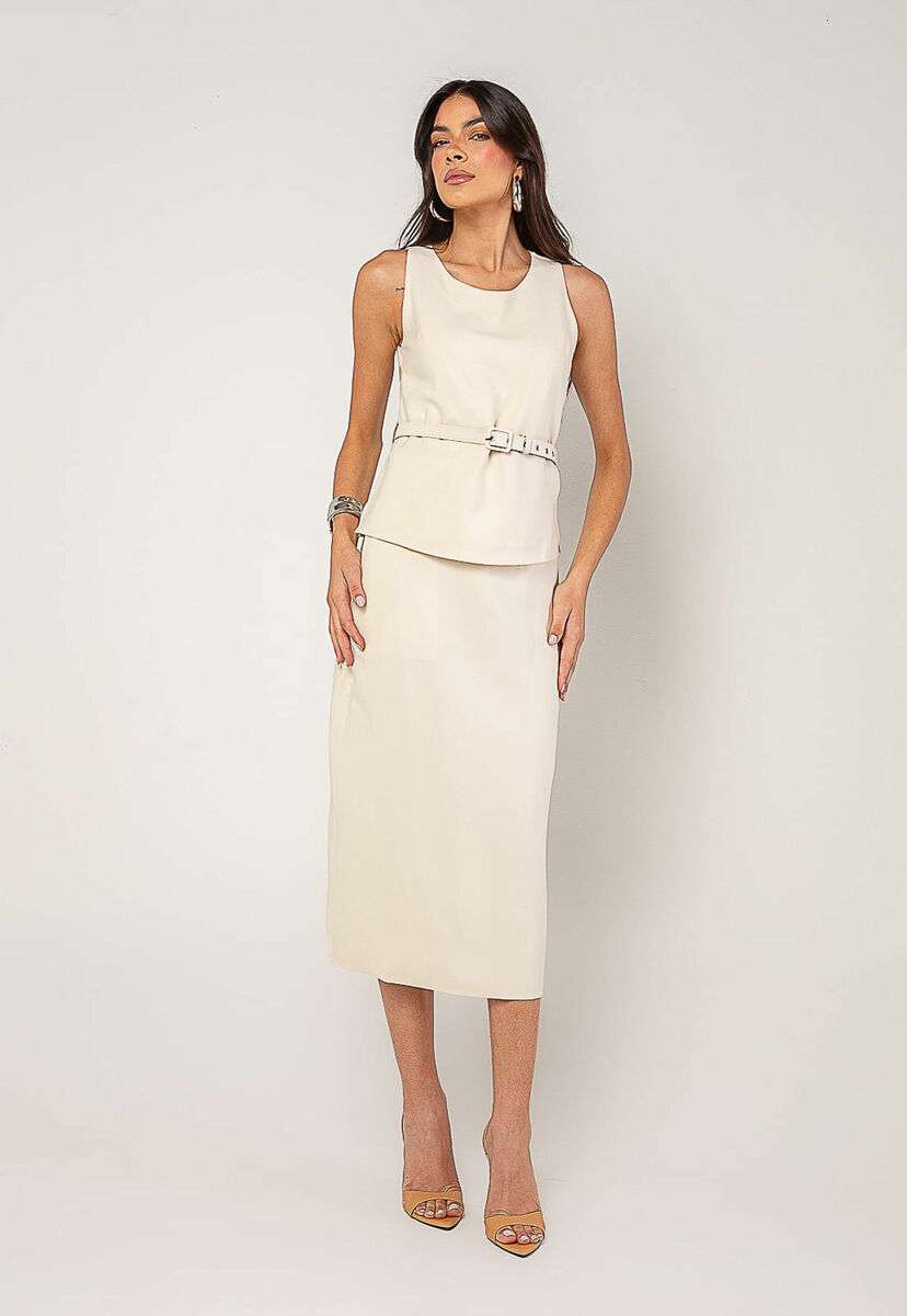 Conjunto Alfaiataria Saia Midi e Regata Marfim Salvatore