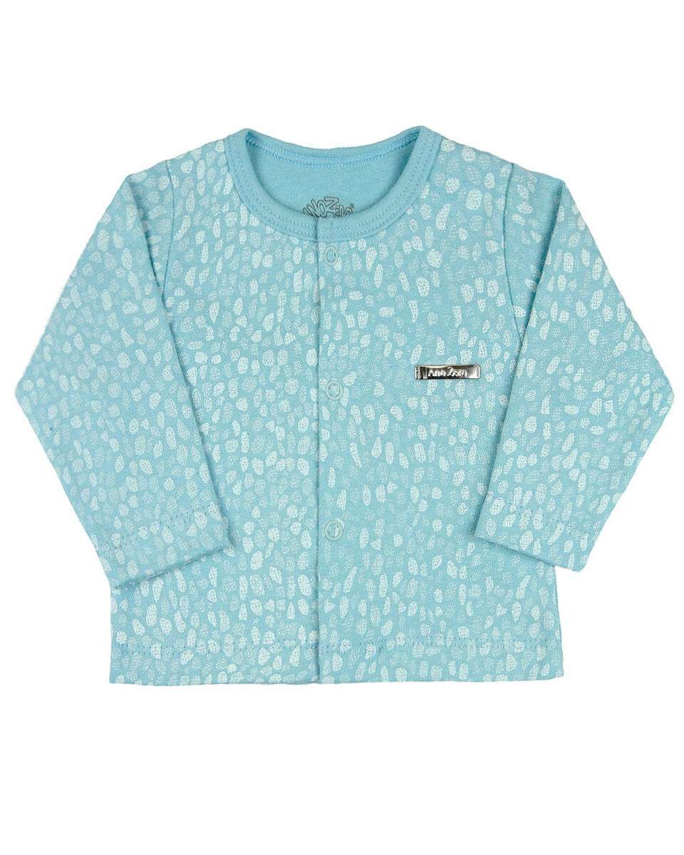 A primeira peça é um Casaquinho em Suedine Fio 40 100% Algodão Estampado, um tecido macio e aconchegante que é perfeito para manter o seu bebê aquecido. O casaquinho possui uma abertura em botões fixos, facilitando na hora de vestir e despir o bebê.
