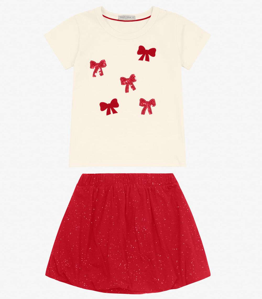 Conjunto Blusa com Saia em cotton leve Trick Nick Off White