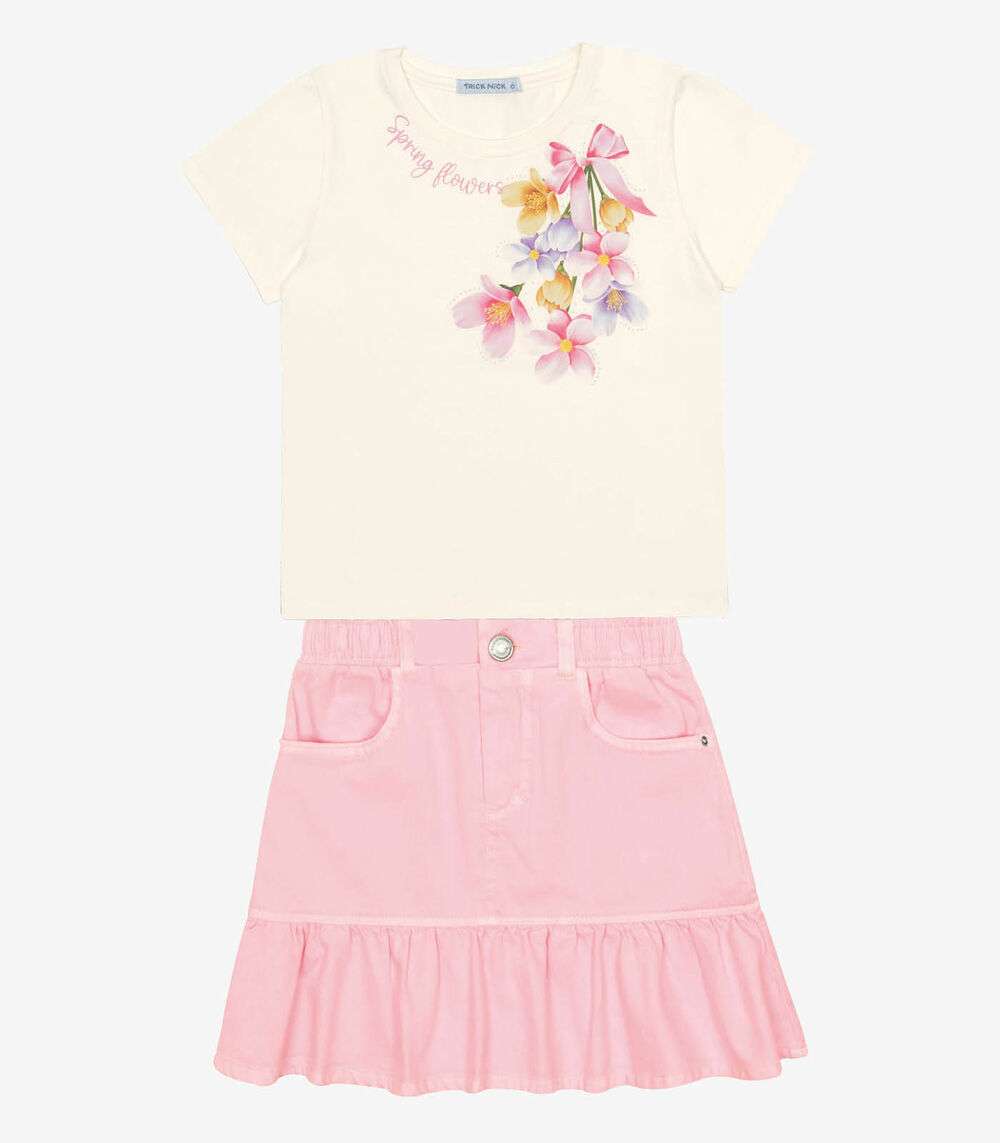 Conjunto Blusa Com Saia Feminina Trick Nick Bege