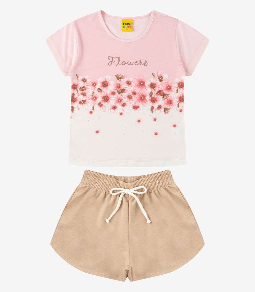 Conjunto Blusa com Shorts Meia Malha Rovi Kids Rosa