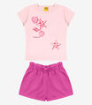 Conjunto Blusa Com Shorts Meia Malha Rovi Kids Rosa