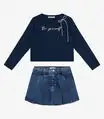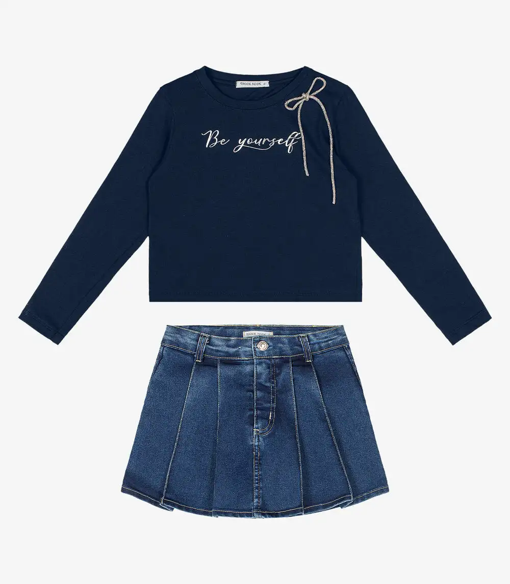 Conjunto Blusa Com Shorts Saia Jeans Trick Nick Azul