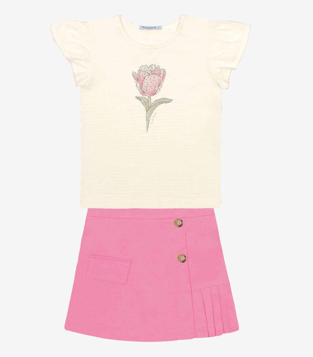Conjunto Blusa Com Shorts Saia Trick Nick Bege