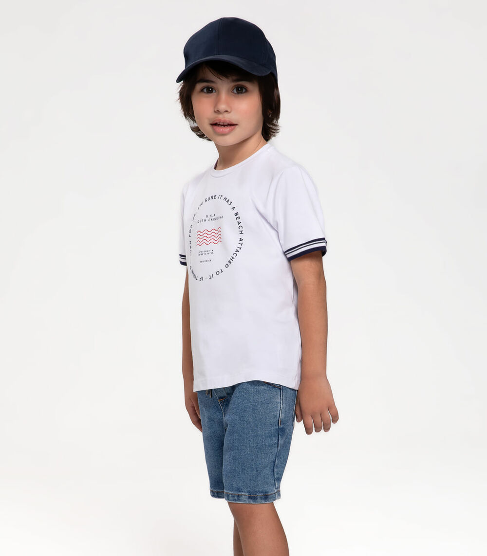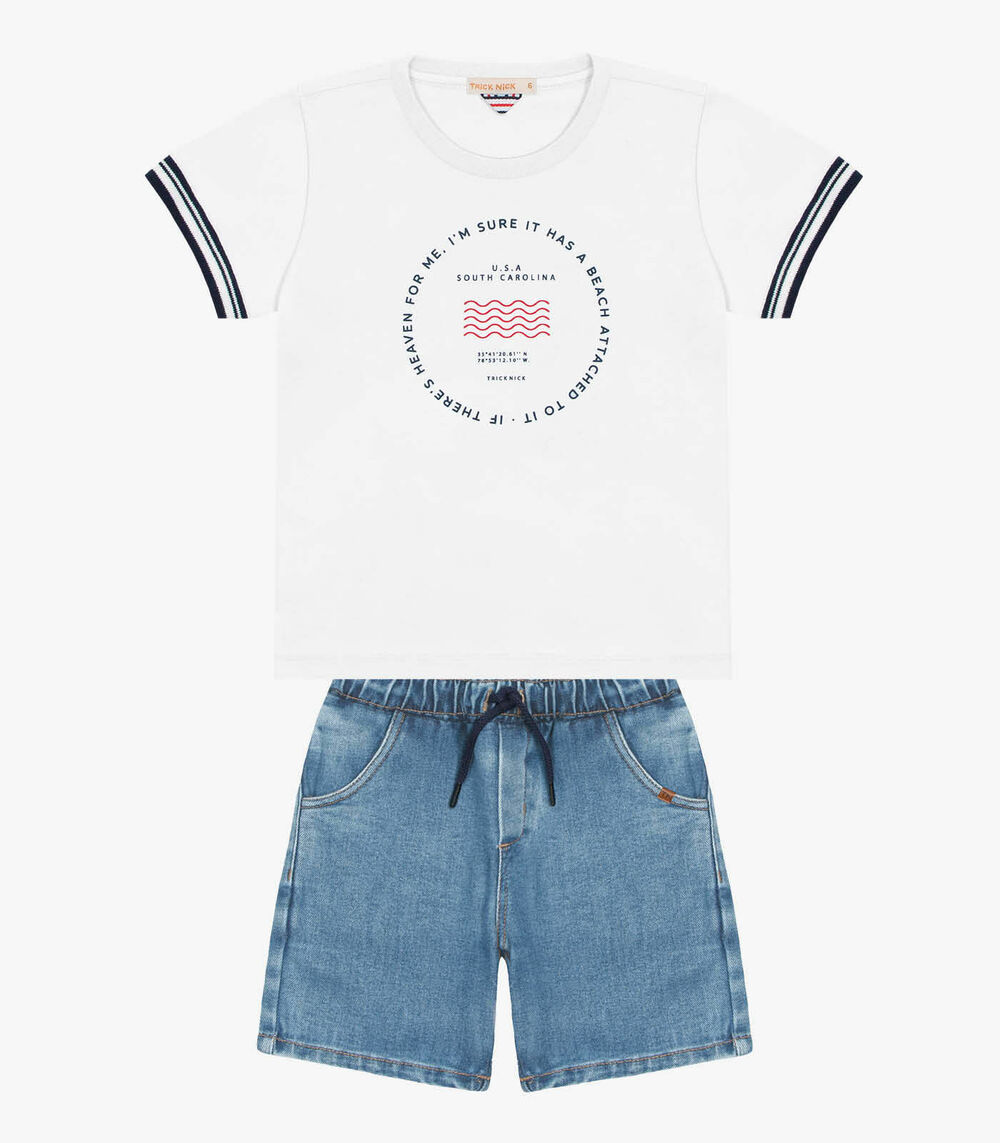 Conjunto Camiseta Com Bermuda Jeans Trick Nick Branco