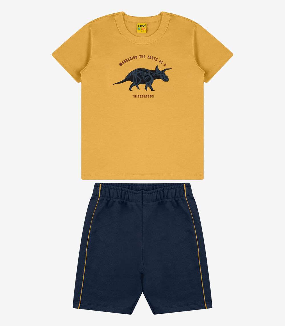 Conjunto Camiseta com Bermuda Masculino Rovi Kids Amarelo