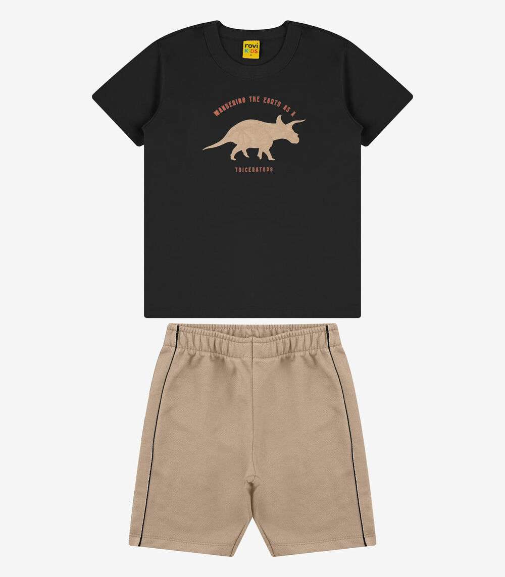Conjunto Camiseta com Bermuda Masculino Rovi Kids Preto