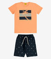 Conjunto Camiseta com Bermuda Meia Malha Rovi Kids Laranja