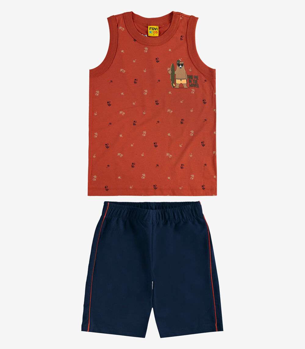 Conjunto Camiseta com Bermuda Meia Malha Rovi Kids Laranja