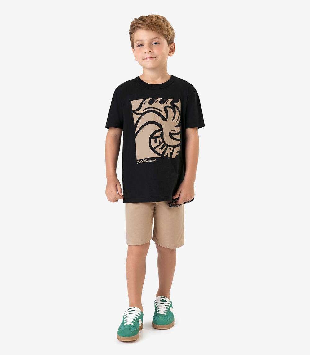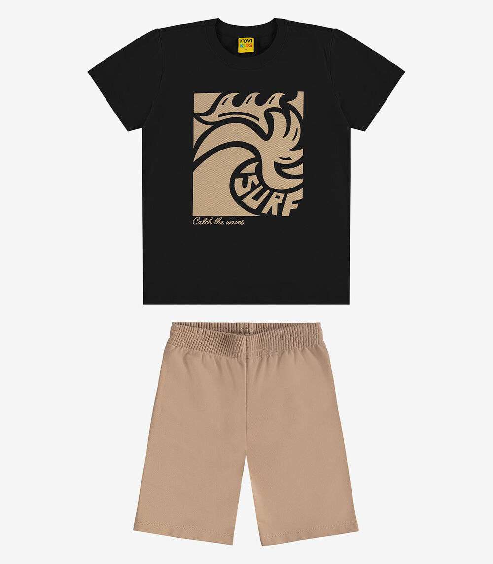 Conjunto Camiseta com Bermuda Meia Malha RoviKids Preto