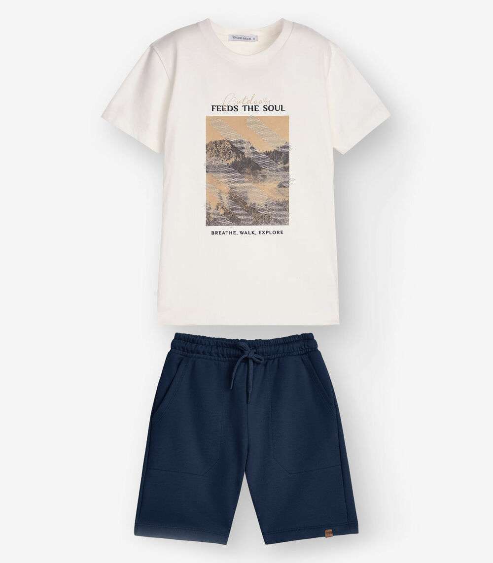 Conjunto Camiseta com Bermuda Menino Trick Nick Bege