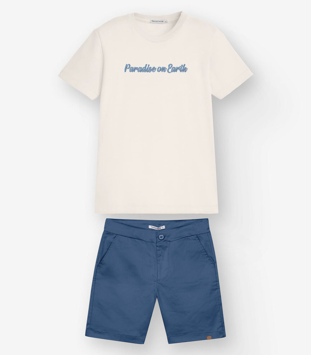 Conjunto Camiseta com Bermuda Menino Trick Nick Bege