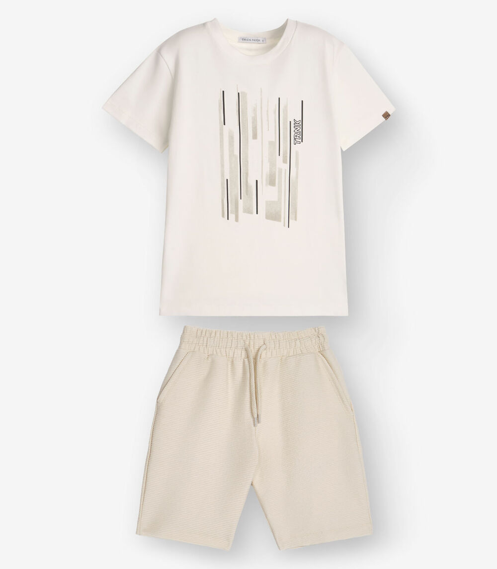 Conjunto Camiseta com Bermuda Menino Trick Nick Bege