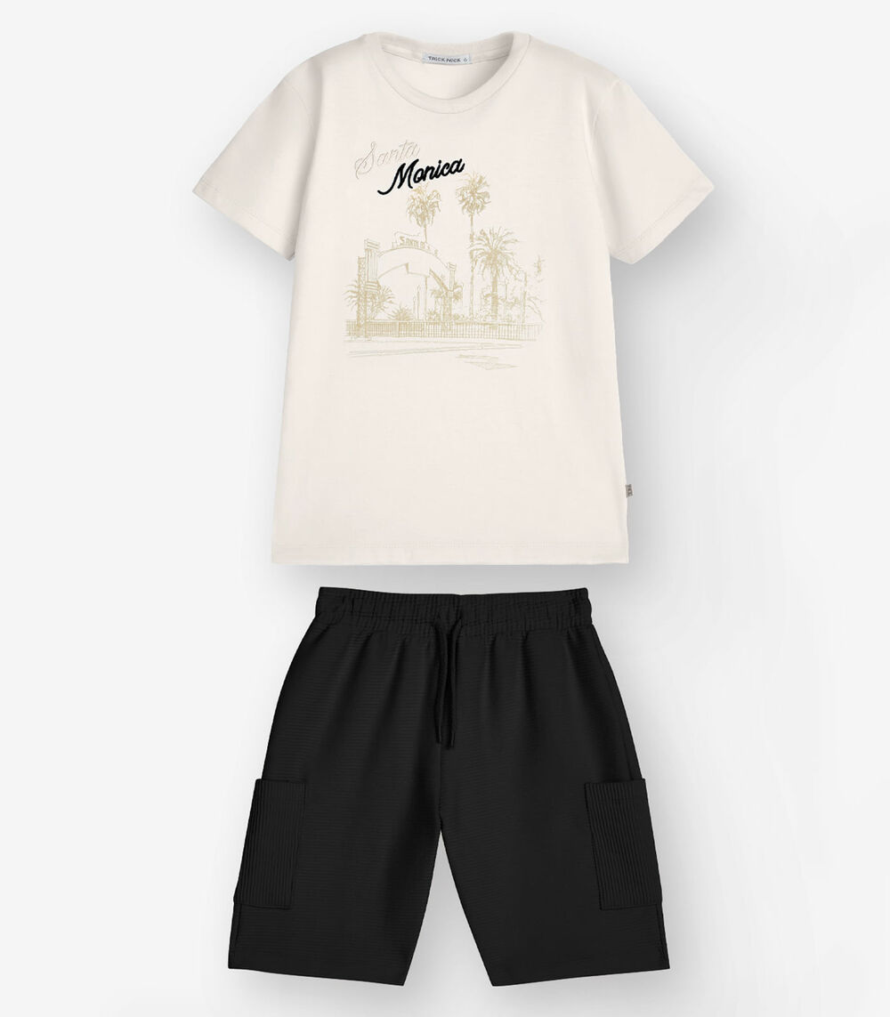Conjunto Camiseta com Bermuda Menino Trick Nick Bege