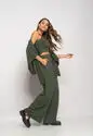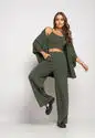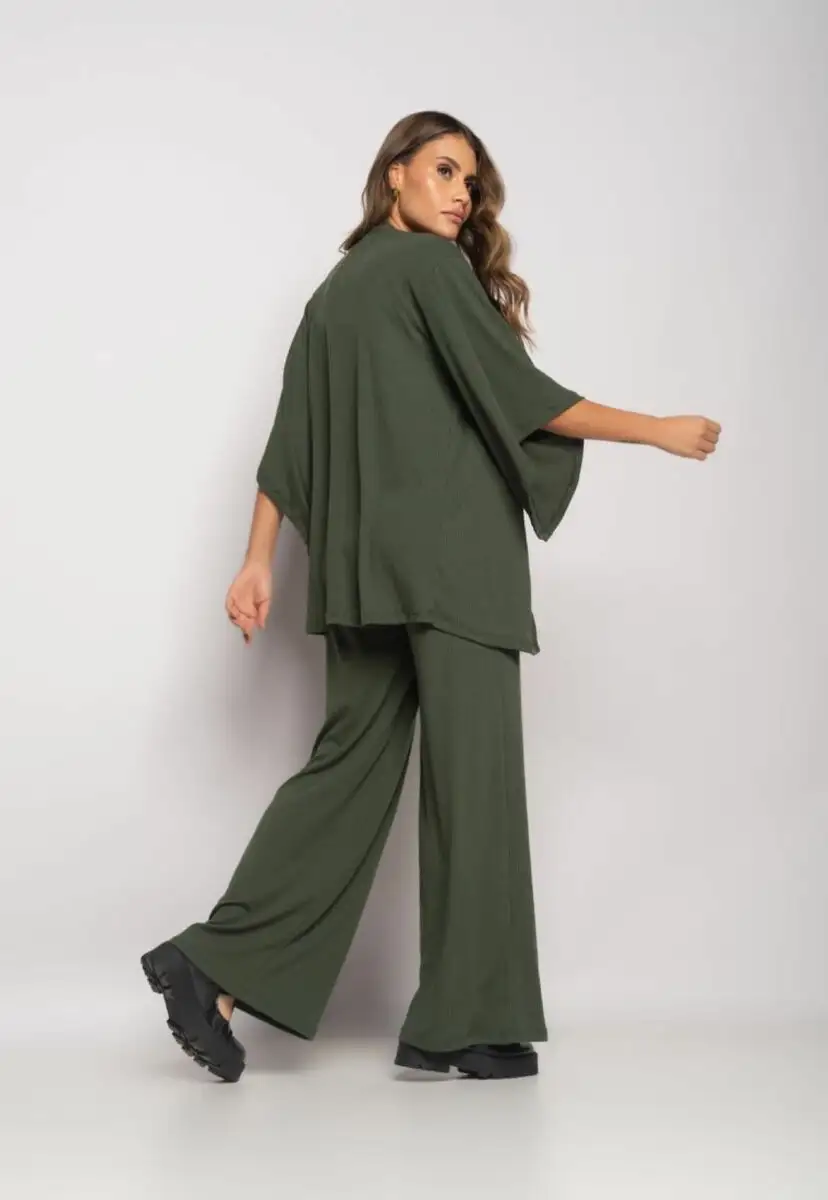Conjunto Com Kimono, Cropped e Wide Leg Canelado Verde Salvatore
