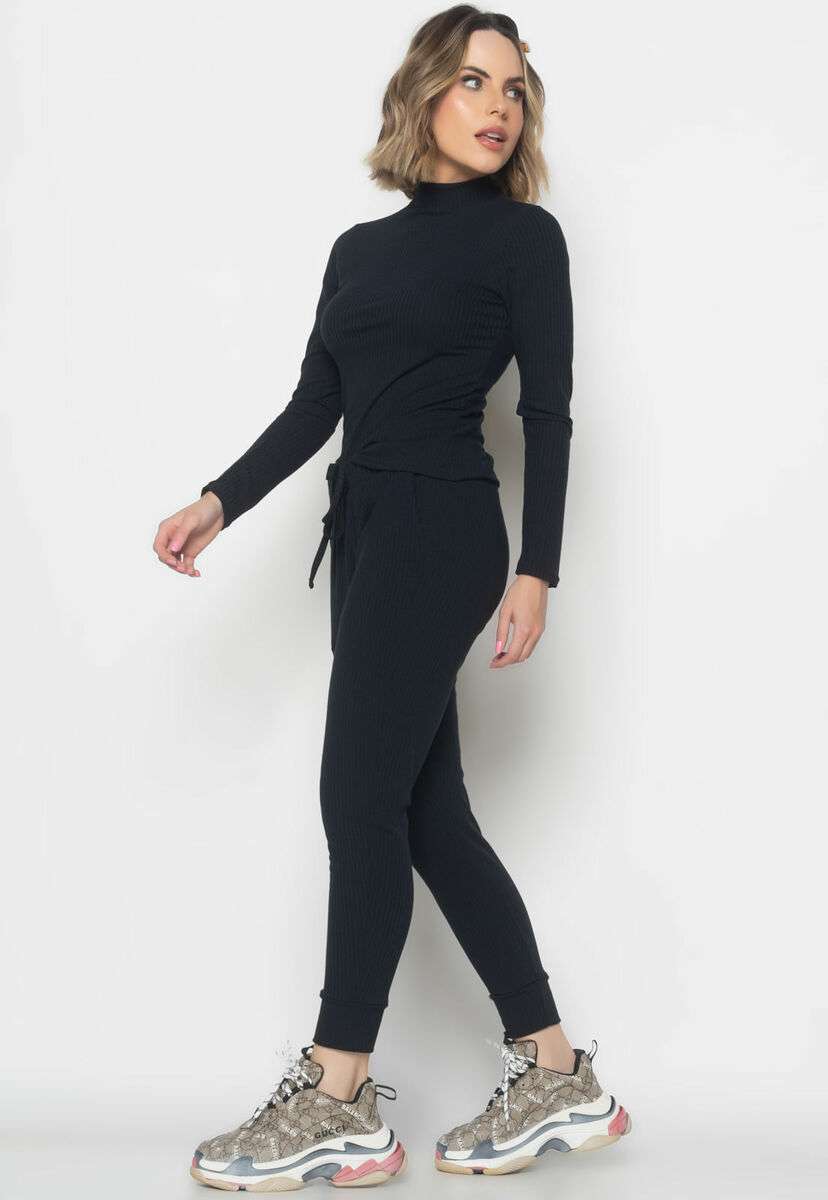 Conjunto Comfy Com Blusa Gola Alta Manga Longa e Jogger Canelado Preto Salvator