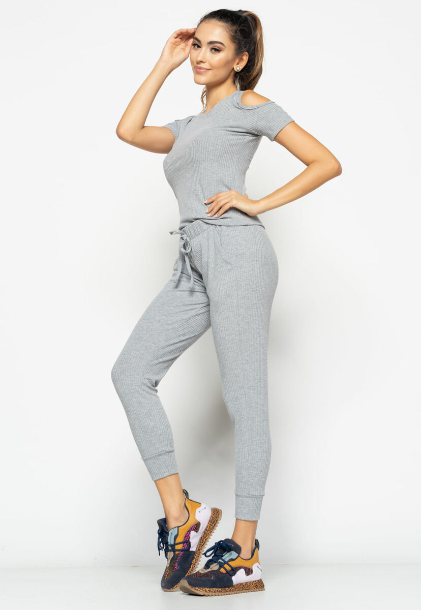 Conjunto Comfy Com Blusa Ombro Vazado e Jogger Canelada Mescla Salvatore Fashio
