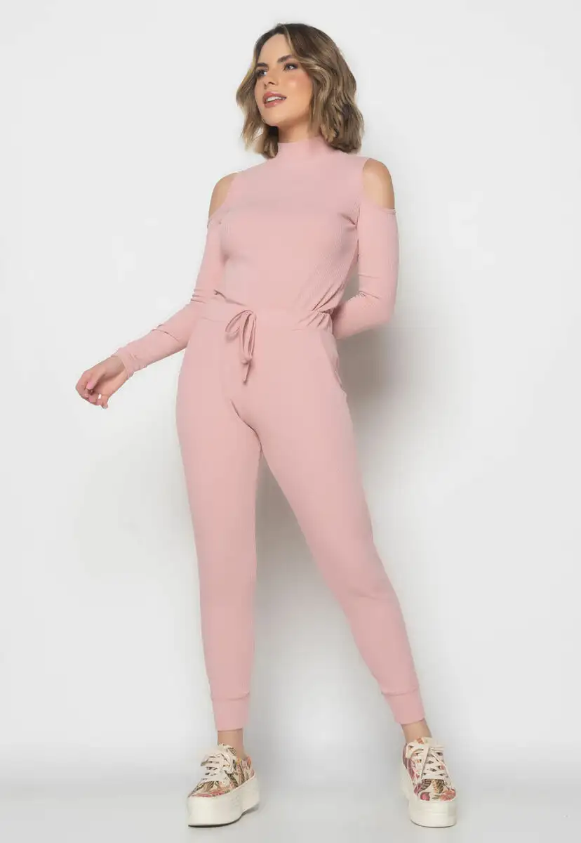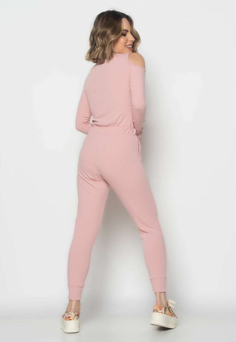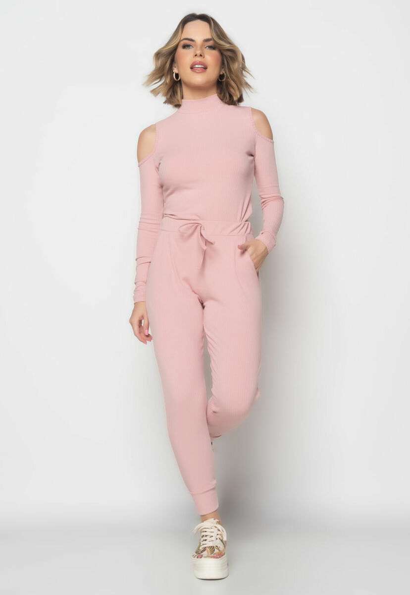 Conjunto Comfy Com Blusa Ombro Vazado M/L e Jogger Canelada Rosa Claro Salvatore