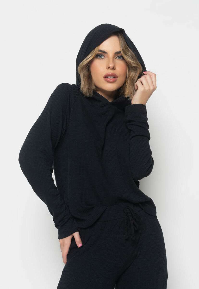 Conjunto Comfy Com Casaco e Jogger Canelado Preto Salvatore Fashion