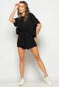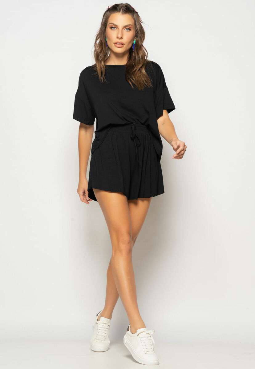 Conjunto Cropped Amplo Manga Curta e Short Malha Preto Salvatore