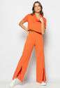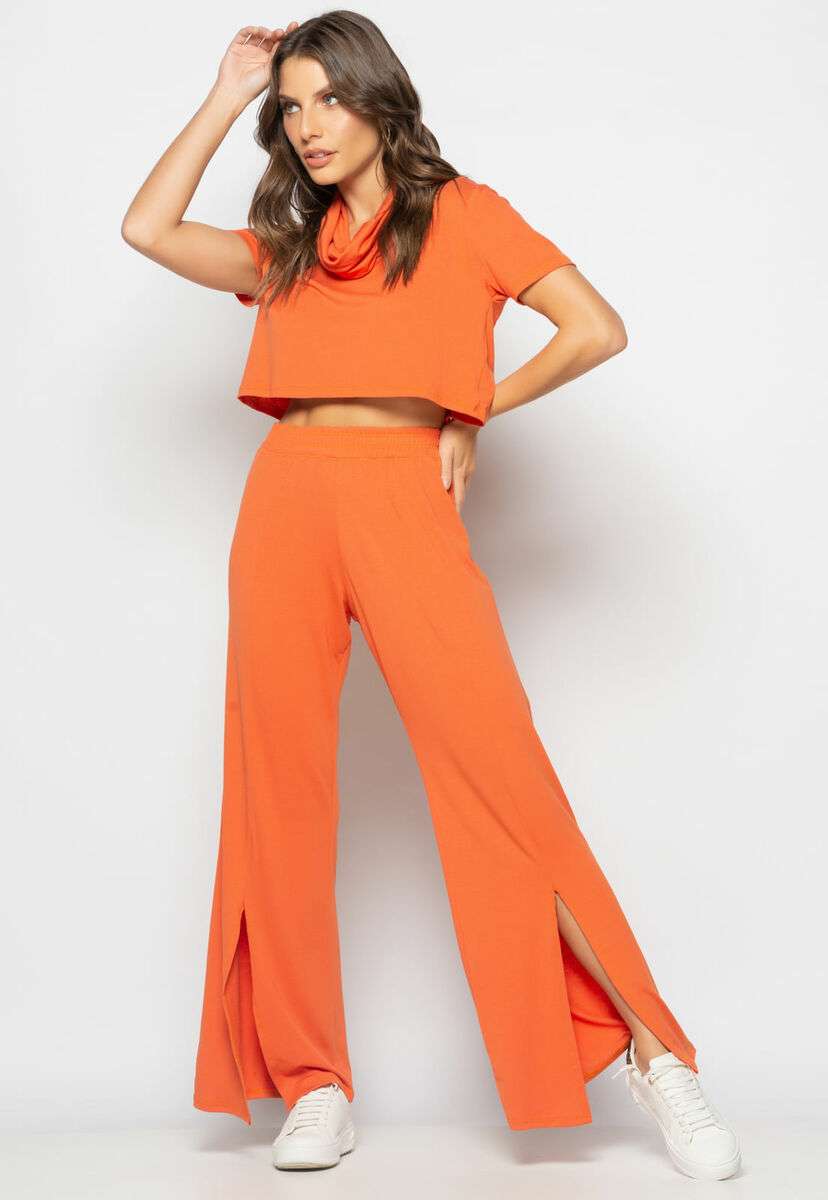 Conjunto Cropped Golão E Calça Fenda Frontal Malha Telha Salvatore
