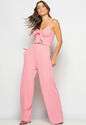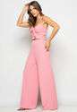 Conjunto Cropped Laço e Wide Leg Canelado Rosa Salvatore