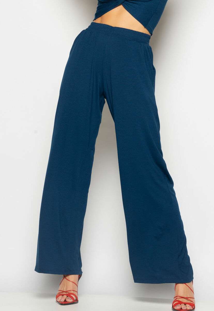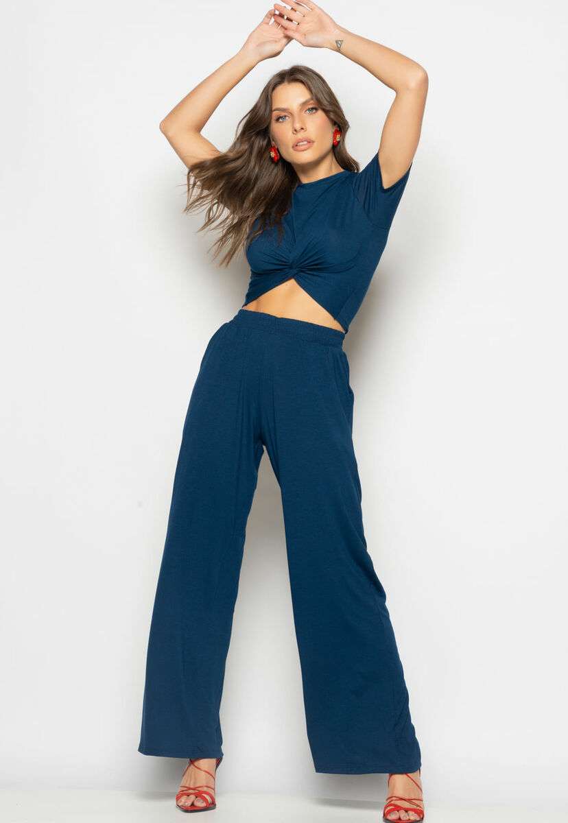 Conjunto Cropped Nó e Wide Leg Malha Azul Salvatore