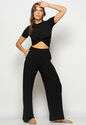 Conjunto Cropped Nó e Wide Leg Malha Preto Salvatore