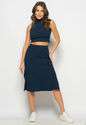 Conjunto Cropped Regata E Saia Midi Malha Canelada Marinho Salvatore