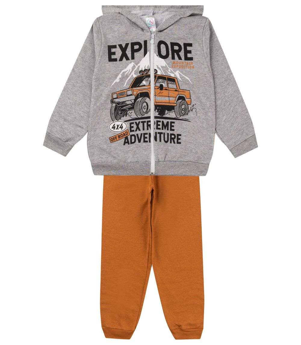 Conjunto De Moletom Infantil Com Capuz Kappes Cinza