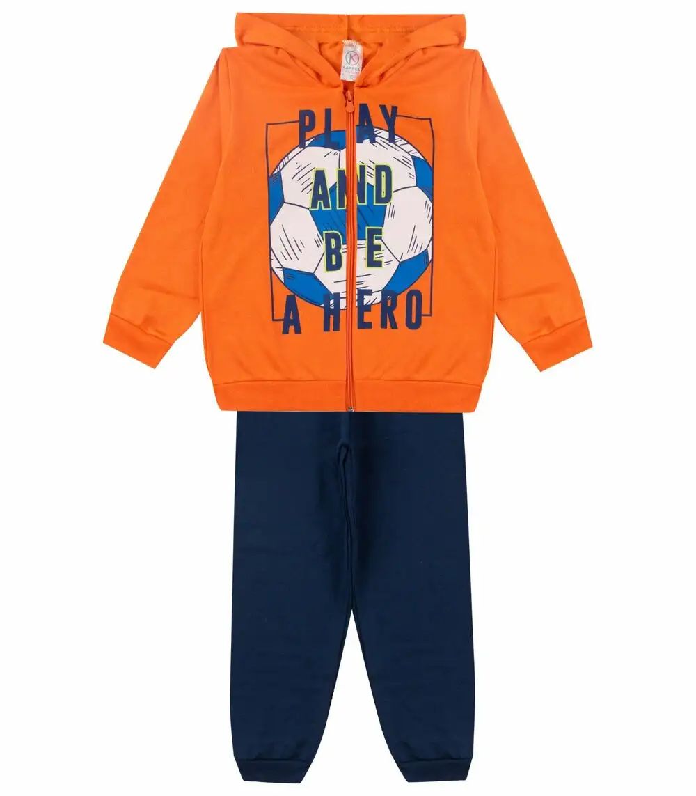 Conjunto De Moletom Infantil Com Capuz Kappes Laranja